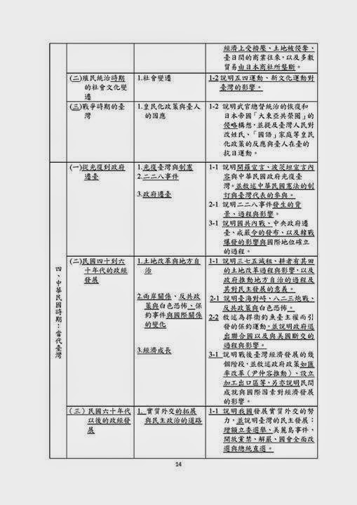 「微調內容」請見「普通高級中學歷史科課程綱要部分修正表」,連結:https://docs.google.com/file/d/0By07tek8zbJoMFZlT1hpcU5lcFU/edit